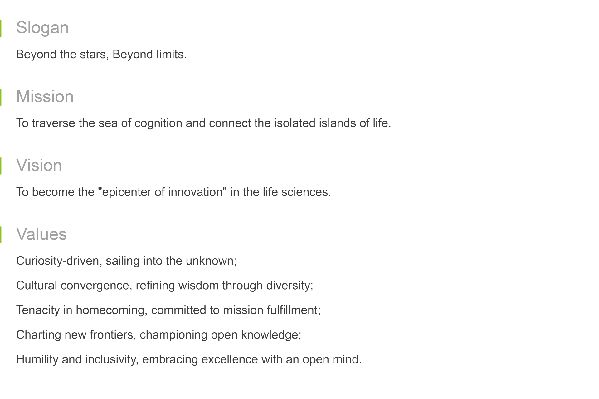 The name “Genscend Biopharma” carries a dual meaning: to walk the path of virtue, and to journey toward a luminous horizon. Our aspiration draws from the spirit of Du Huan—the courage to step beyond mapped territories and embrace the wisdom of unfamiliar worlds. In the expansive cosmos of life sciences, we will not sail only where others have sailed. We set forth as celestial navigators, seeking undiscovered continents in the sea of stars.